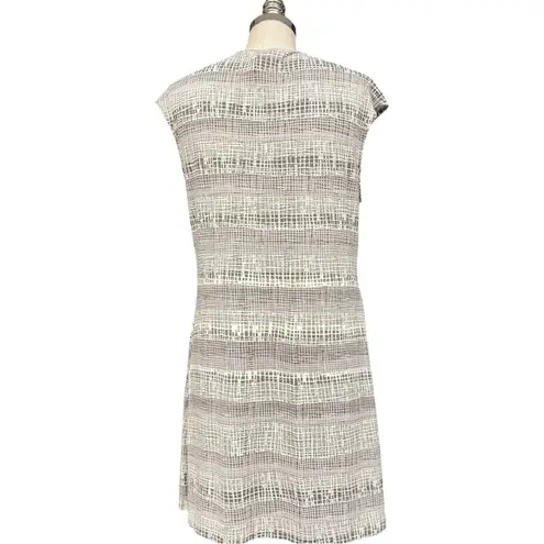 Sleek and modern, this V Cristina tunic top features a black and white geometric grid print with a d... Show more