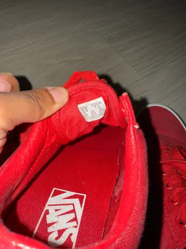 Beautiful red vans with unique design. Hardly worn and is in excellent condition!
