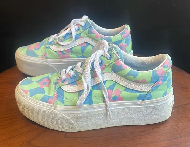 VANS Old Skool Stackform Checkerboard Floral Blue Canvas Leather Shoes VGUC Wmn 6.5 •DETAILS: *Styli... Show more