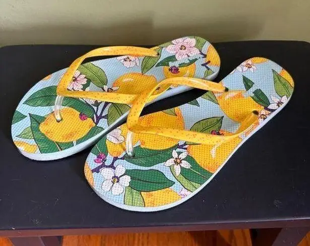 Yellow and white Vera Bradley rubber flip flops with a lemon tree print, excellent used condition, s... Show more