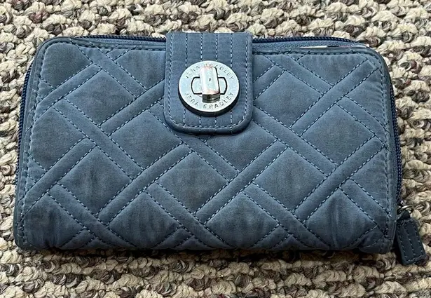 This Vera Bradley gray microfiber turnlock wallet features ample card storage, a zip-around coin pou... Show more
