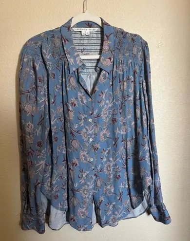Veronica Beard‎ Bohemian Floral Blouse Top Size 10 in Blue Cream Button Down - $59 - From Valerija