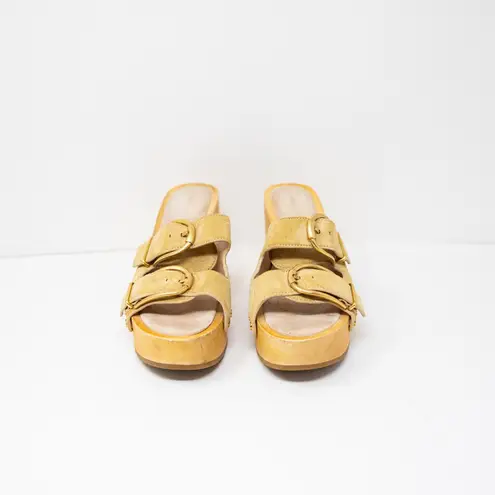 Veronica Beard Halifax Suede Dual Buckle Open Toe High Heel Clog Shoe In Desert Woodgrain block hee... Show more