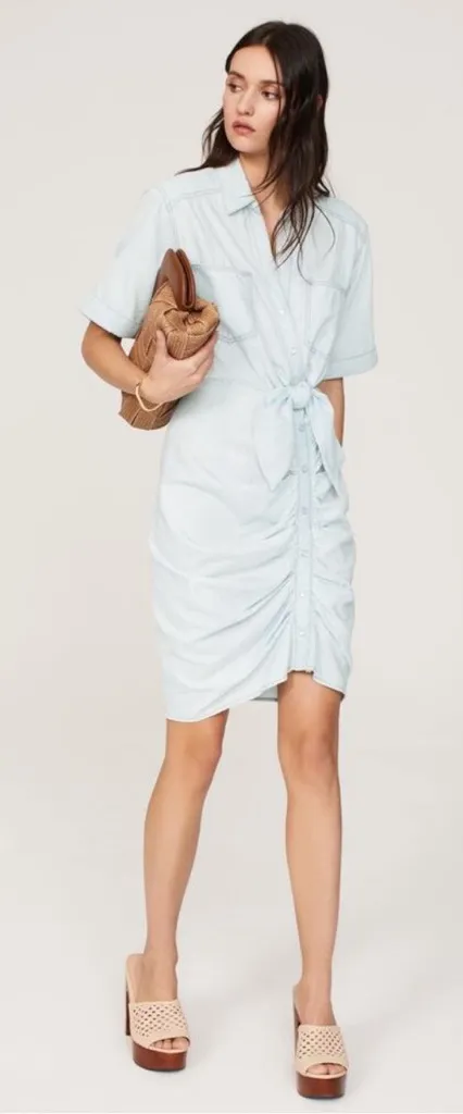 Veronica Beard Hensley Ruched Chambray Mini in Glacier Ice Blue Size 12 - $61 - From Mary