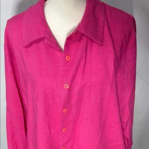 Vibrant Pink Button Down Shirt Embroidered Hem Barbiecore Plus Size Collar 2X - $14 - From SHERRY