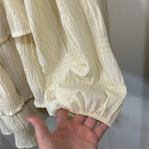 This Vici dress in a soft cream hue features a flattering wrap-style bodice with a V-neckline and el... Show more