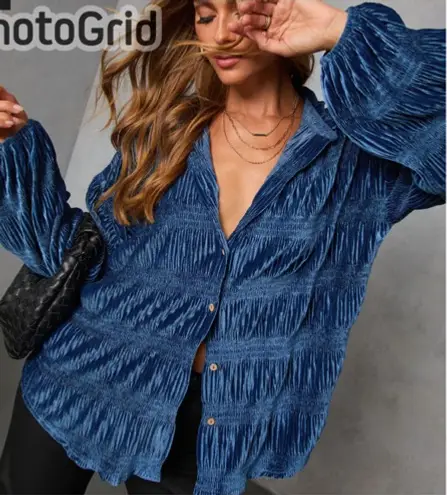 This Vici Women’s “Bette” Textured Velvet Button Down Top in blue (size X-Small) features a soft, st... Show more