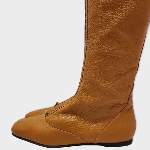 Vicini Tapeet Zipper Tall Leather Boot Front Zip Up Flat Riding Boots Sz 37.5 Brown - $150 - From Linda