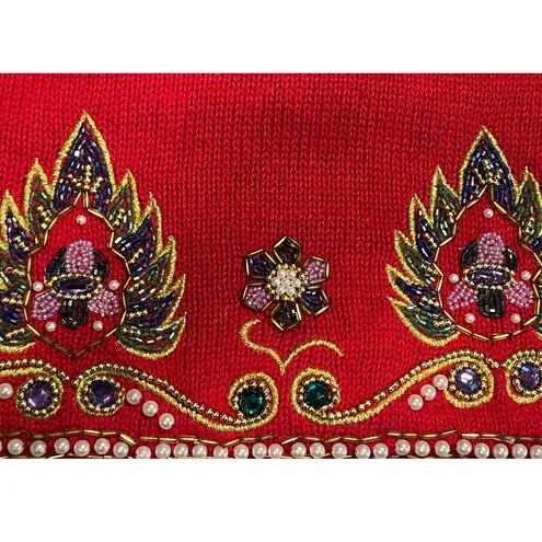 Victoria Jones Woman's Red Embellished Sweater Size M 28" Long x 20" Pit‎ to Pit Size M - $18 - From Bonnie