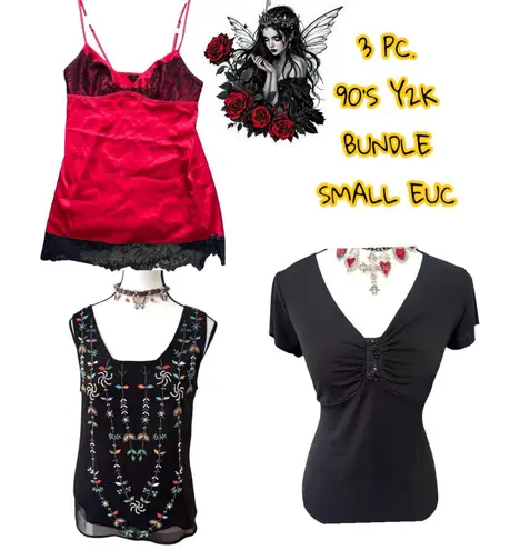 90'S Y2K 3 PC.DARK FAIRY WHIMSY GOTH BUNDLE SMALL BUNDLE #C ALL FIT SZ. SMALL APPROX. 16.5- 17" PIT... Show more