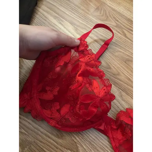 In great condition Victoria’s Secret Low Cut Demi Bra Size 38DD Red Floral Super cute!