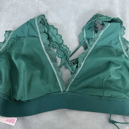 Listed is a PINK Victoria's Secret bralette, dark green with wide bust band, unlined cups, triangle... Show more