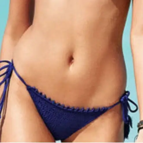 ⭐️NEW⭐️ Victoria's Secret Skyline Blue Crochet Lace Teeny String Bikini Bottoms with Decorative Bead... Show more