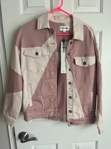 Vigoss pink colorblock jean jacket size S NWT! Oversized fit so could definitely fit up to a medium... Show more
