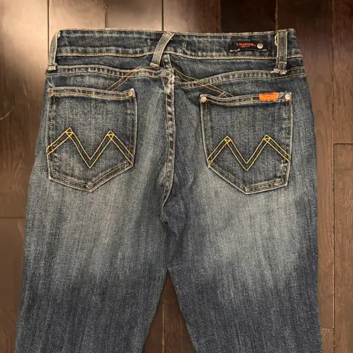 Vintage Vigoss Y2K Flared Wide Leg Raver Indigo Blue Denim Jeans Sz 9/10 Measurements W: 14” L: 41... Show more