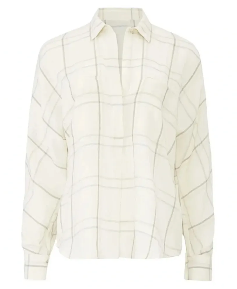 Vince bar plaid popover in off white button down shirt. Excellent used condition. Size large. Only c... Show more