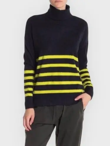 Meet the coziest sweater you’ll ever own—the one so soft, your friends might just try to snag it before you can list it. This Vince Camuto eyelash knit turtleneck is a perfect mix of comfort and style, with bold neon yellow stripes that pop against a deep navy background.