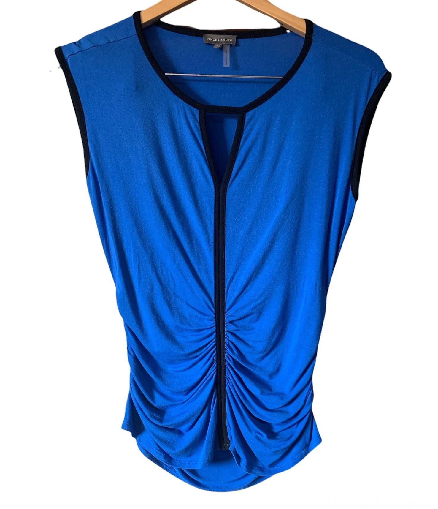 Vince Camuto Sleeveless house Royal Blue with Black trim Ruched at bottom Extremely flattering... Show more