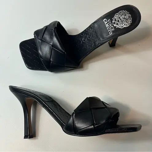 Vince Camuto Square Toe Leather Heels Good preloved condition Upper: leather Classic black Heel... Show more