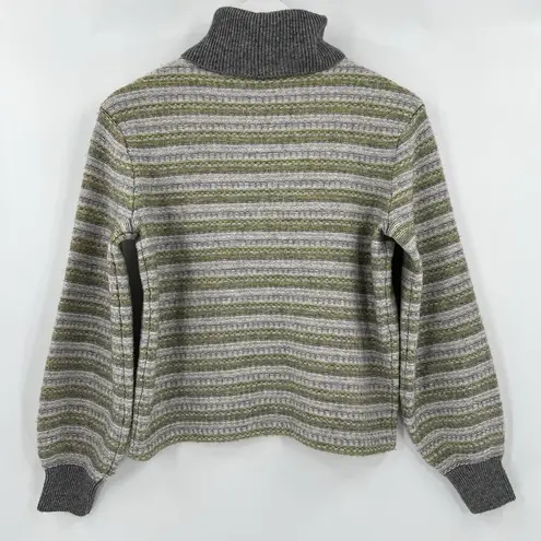 Vince Green Gray Fair Isle Striped Wool Cashmere Blend Turtleneck Knit Sweater Pullover Long Sleeves... Show more