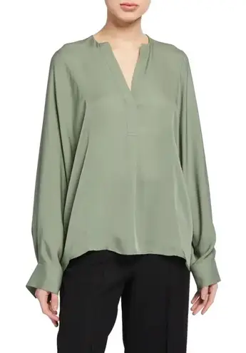 Vince Half Placket Long-Sleeve 100% Silk Blouse Green Preowned, no flaws 100% silk lightweight an... Show more