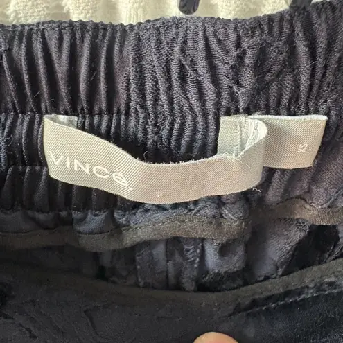 Vince navy blue floral jacquard wide-leg drawstring elastic waist pants. Pockets front and back. 100... Show more