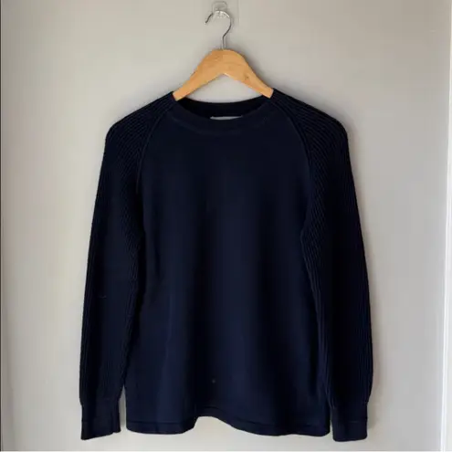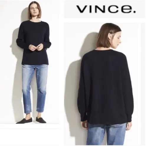 Vince Ribbed Raglan Sleeve Crewneck Sweater Midnight / Dark Blue Cotton Duel Fabrics Oversized Fi... Show more