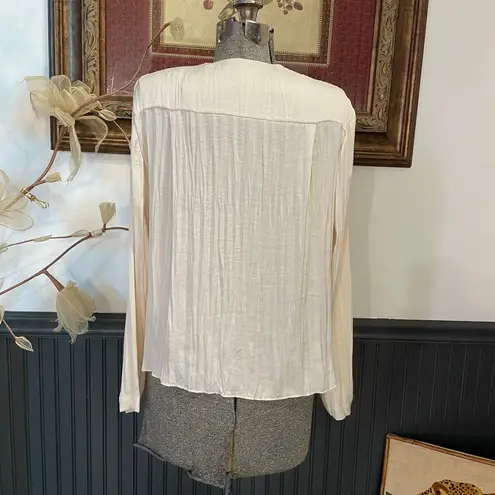 Vince, designer, Long Sleeve, Crushed, Chiffon, statement, modern, original, on trend, lifestyle, Student staple, street style, Instagram, chic, blogger, tik tok, influencer, Preppy, Ivy League, Country Club, pure bred, wearable classic, polished, classic dressing, elevated, neutral, old money, Cosmopolitan, chic, Vince blouse, ivory crinkled top, textured button front shirt, lightweight Vince blouse, crinkle polyester top, Vince ivory shirt, minimalist long sleeve blouse, Vince women’s clothing, textured ivory blouse, Vince essentials