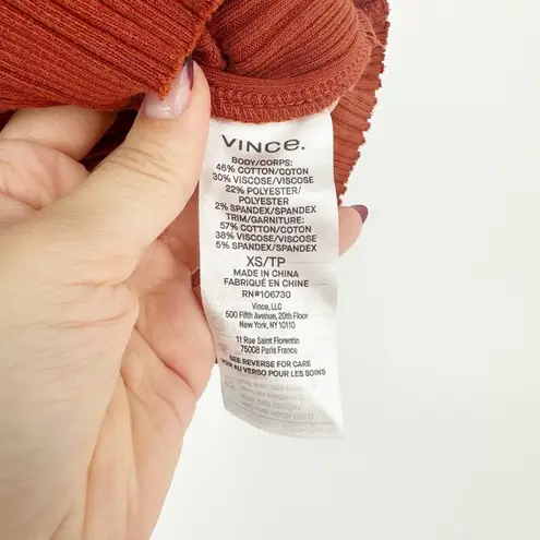 Vince Square Neck Rib Tank Top in Rust Amber. Size XS. Preowned condition. Please refer to photos fo... Show more