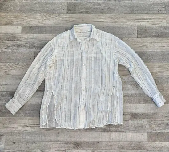 Vince white pinstripe lightweight button down semi sheer side slits The slits have a button on one... Show more