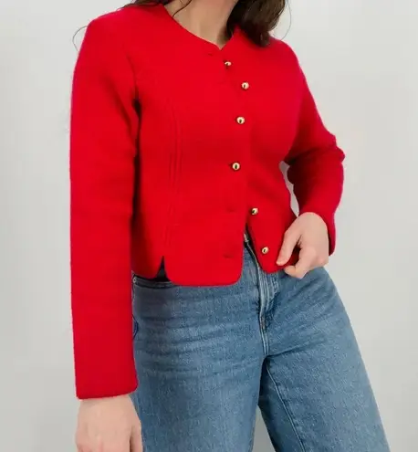 vintage 100% boiled wool michigan cherry red button down fitted sweater jacket - $54 - From Cloth For Kin