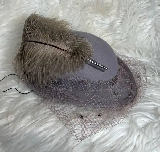 Vintage 60s Designer Gray Wool Netted Veil Ostrich Feather Fascinator Hat church Kentucky derby Mich... Show more
