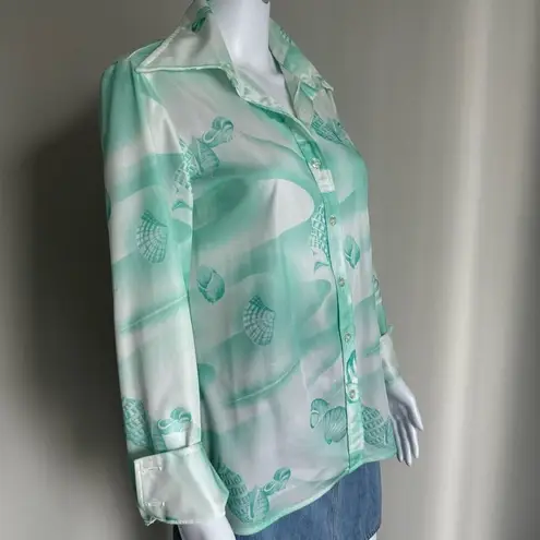 1970’s Sea Shell Themed Dagger Collar Top, So Cool In A Sea Blue/Green Color, Size Tag Missing, Best... Show more