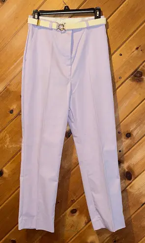 Size 12 but runs small - check measurements Bright lavender color Zipper front, side pockets Gold a... Show more