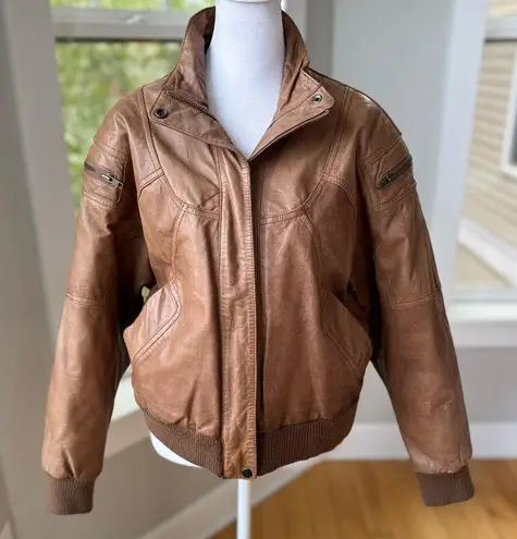 Amazing vintage distressed brown leather bomber jacket. Slightly cropped fit. Quilted interior for warmth. Small black mark as shown. Otherwise excellent condition. Fits true to women’s size medium. See measurments.