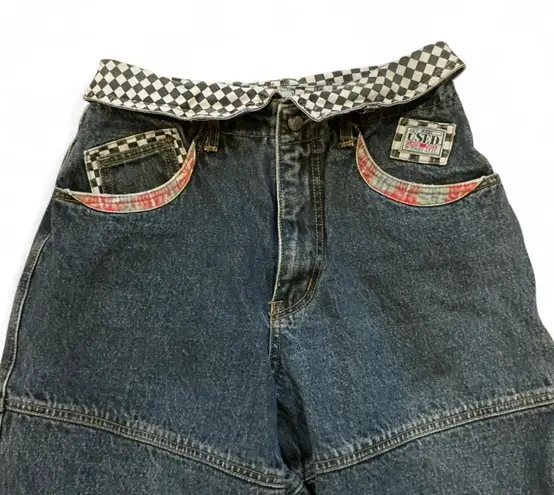 Vintage 80s Get Used by Elie denim jeans checkerboard fold over waist patchwork Red Size 31 - $81 - From Kara