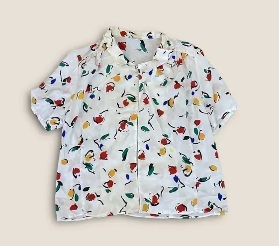 Brand: Russ Features: Crinkle Fabric, Short Sleeve, Button Front, Padded Shoulders, Lightweight, Collared, Printed, Elastic Waistband, Unlined, Side Seam Pockets, Midi Skirt Size: 14 Waist: 14” across unstretched Skirt Length: 31” Pit to Pit: 22” Top Length: 24.25” Condition: Good Used Condition – Discoloration at collar, unclear button loop placement Age: 1980s Color: White Combo Fabric: Unavailable Care: Machine Wash Where I Was Made: USA Expected Ship Time: 2–3 BUSINESS days Reasonable offers always welcome. Comment any questions. cottagecore, retro fruit print, quirky vintage, art teacher energy, 80s revival, playful prints, lounge-to-street, kitschy chic, vintage skirt set, made in USA fashion