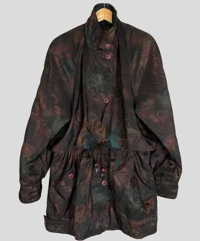 Vintage Forecaster of Boston women’s coat in dark abstract iridescent pattern. Pockets in front. Tie... Show more