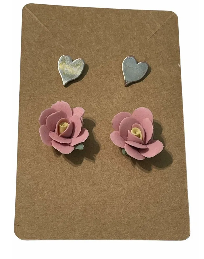 Vintage 90s Stud Earrings Set Flower Heart Pink Size: One Size Condition: good condition gently used Features: push back, flowers, hearts, 1990s, vintage, studs Measurements: See photos for approximate measurements