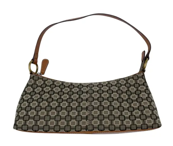 Vintage 90s Y2K Nine West Mini Shoulder Baguette Bag Grey, black, cream geometric printed canvas wi... Show more