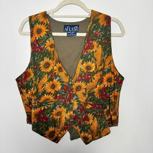 Vintage Atlas sunflower print vest size large Black - $30 - From Golden