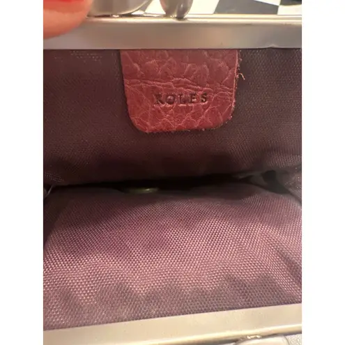 Discover a touch of timeless elegance with this exquisite burgundy leather coin purse. Its pebbled texture invites your touch, promising a luxurious feel with every use. The antique silver kiss clasp gleams, offering a secure and stylish way to store your essentials. Inside, the smooth lining protects your coins and small treasures, while the embossed ROLES brand adds a subtle mark of quality. This charming pouch is perfect for adding a vintage flair to your everyday outings or as a sophisticated accessory for evenings out. Material: Leather Keywords: vintage coin purse, burgundy leather wallet, kiss clasp pouch, small leather wallet, textured leather, women's accessory, antique silver clasp, Roles brand purse, coin holder, evening clutch, fashion accessory, retro wallet, gift for her