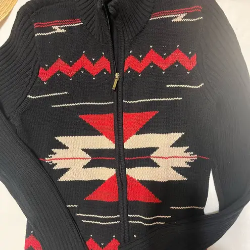 Vintage Chaps zip-up knit sweater featuring a bold Southwestern / Aztec style pattern in red, cream,... Show more