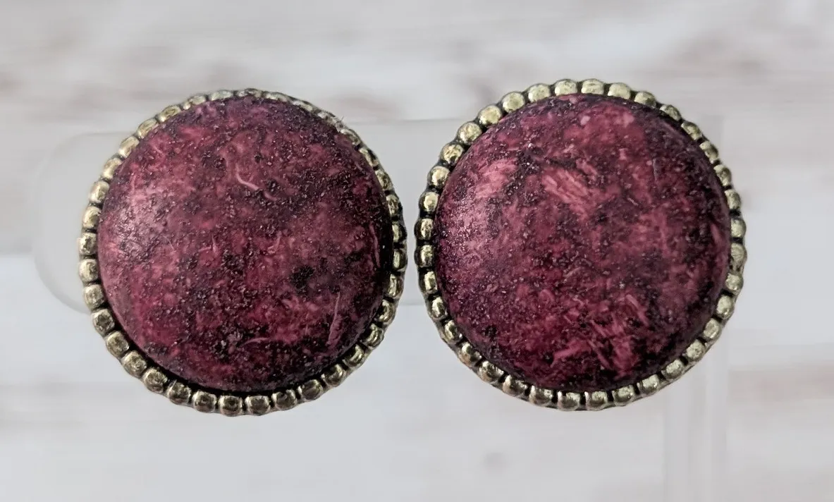 These earrings measure about 1". I am not sure of the material. One sits slightly off center in the halo. Small mark to front of one. Rear and sides of halo have heavy chipping, marks and signs of wear. Some tarnsih and discoloration to clips. Preowned vintage earrings, sold as shown - I am unsure of material type(s) because of this. Pictures show different angles for you to review - while I attempt to note any defects, some tarnish/signs of wear may be visible that are not otherwise stated. Earrings are tested and photographed on a thin/smooth earring stand (not included) to show that the clips are in working order. I ship quickly and provide tracking information but delivery times are an estimate. Item is located in the United States. Country of manufacture cannot determined.
