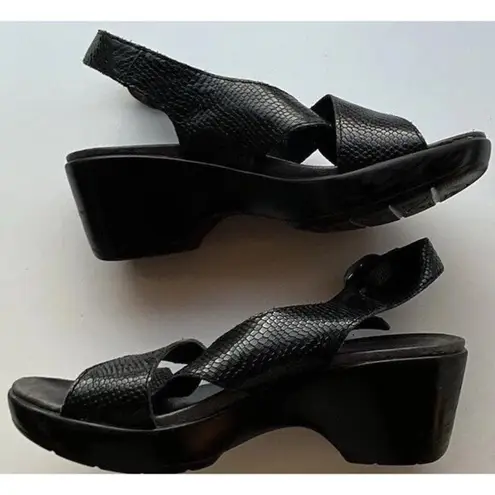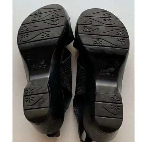 This product is a pair of vintage Dansko women's black lizard leather slingback sandals in size 5.5.... Show more