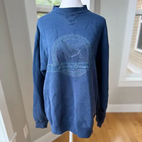 Vintage Eddie Bauer navy blue classic 90s duck logo cotton mockneck sweatshirt. No size tag. Measure... Show more