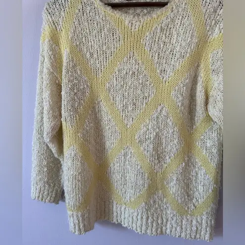 Vintage Ginenne yellow & cream sweater Medium checkered acrylic 80s knit - $9 - From MadJoy