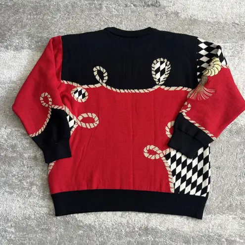 Vintage Jaeger Sweater Womens Medium Embroidered Rope Metallic Black Red - $30 - From kelli
