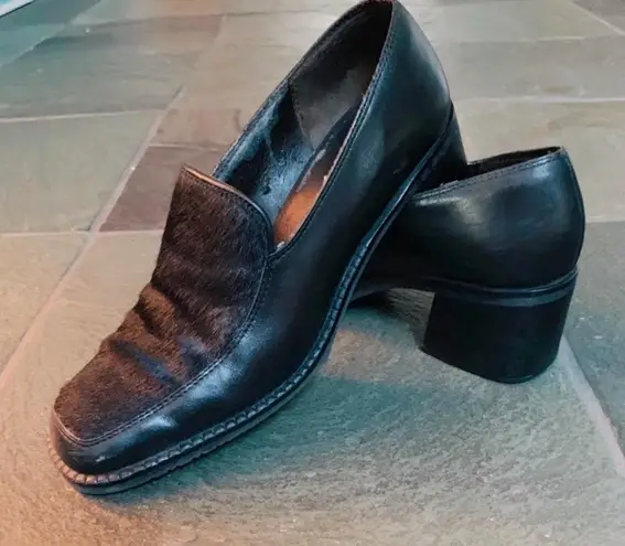 Vintage leather Unisa black loafer with fur front and chunky block heel Size 7.5 - $31 - From Robin