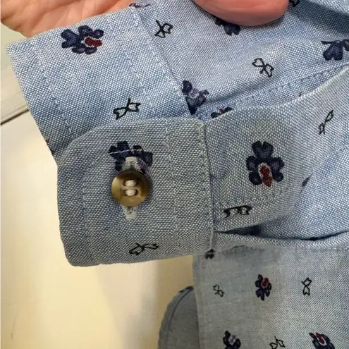 Vintage LL Bean Women’s Floral Patterned Blue Button Up Shirt Sz 10 100% Cotton - $21 - From kj